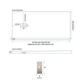Hochwertige Duschwanne aus Marmorharz mit Steineffekt. Rutschfest, extrem widerstandsfähig und mit zuschneidbarer GelCoat-Beschichtung. Das Abflussgitter verleiht diesem Produkt ein einzigartiges und unnachahmliches Design. Mineralmarmo, oder besser bekannt als Marmoresina, ist ein Material, das zu 75 % aus natürlichen mineralischen Füllstoffen und zu 25 % aus hochwertigem Harz besteht. Die mit diesem System hergestellten Duschwannen haben dank der in diesem Material vorhandenen Mikroporositäten eine sturz- und kratzfeste Oberfläche.