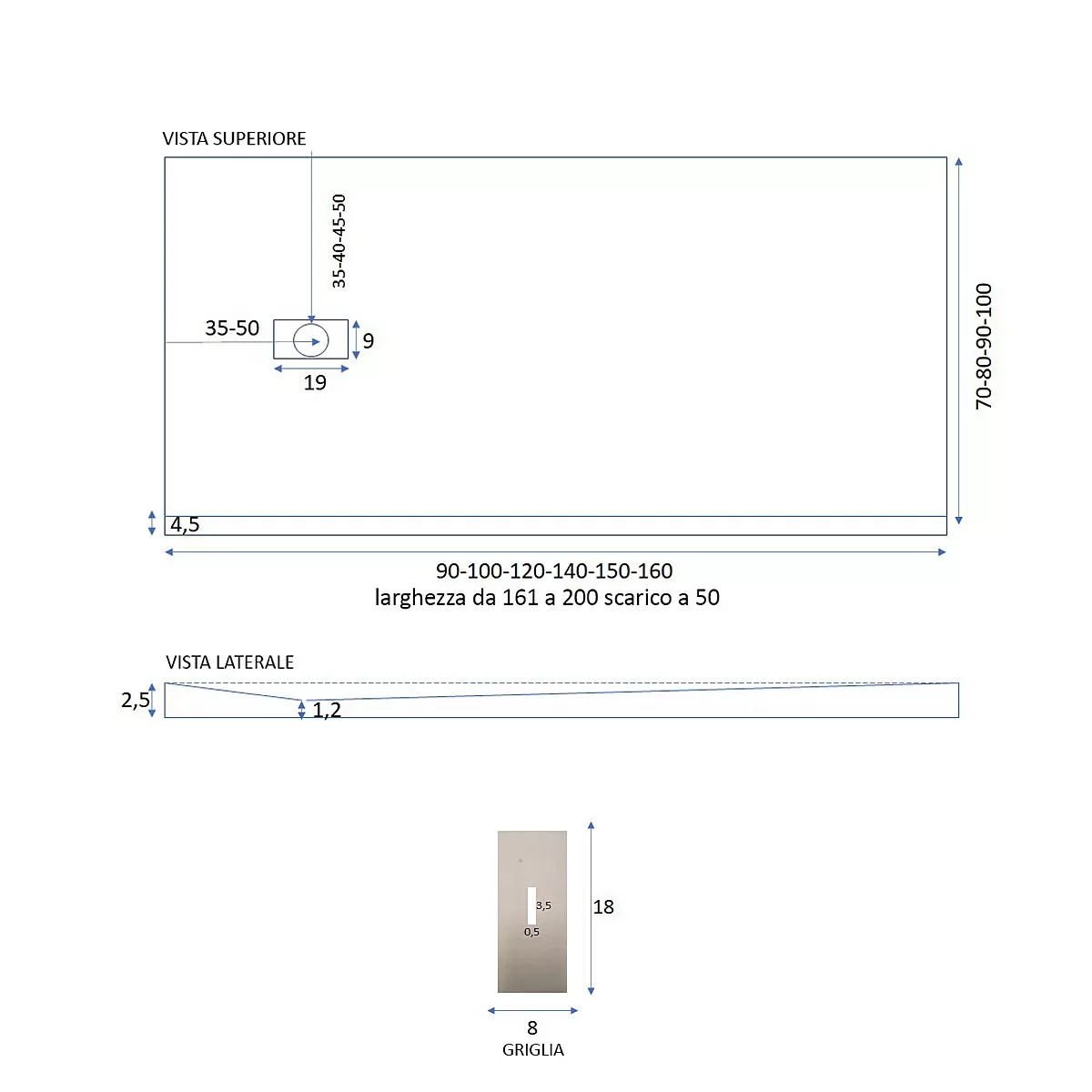 70x90 Duschwanne