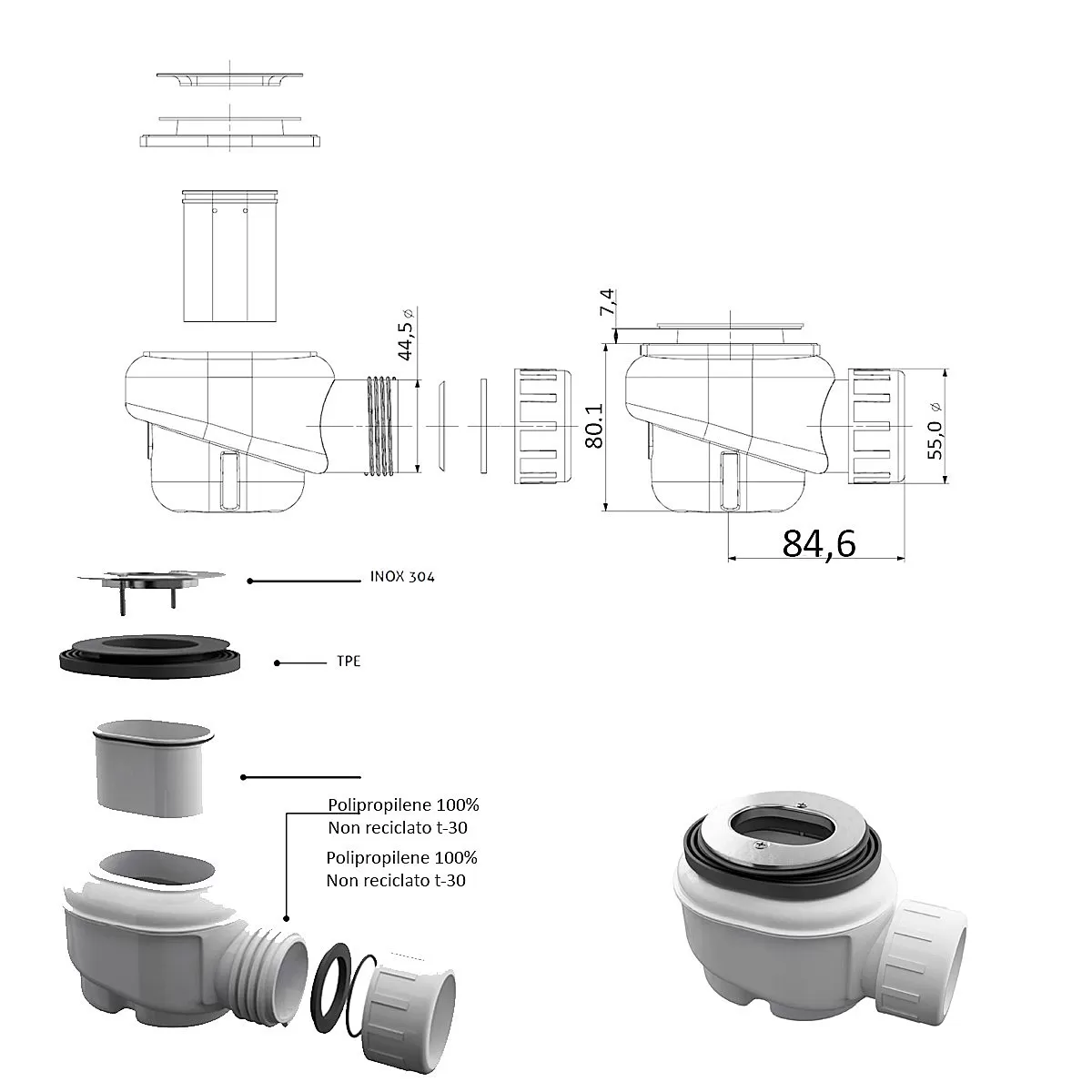 - Ablaufstopfen inklusive: Siphon, Ablauf 42 Liter/Minute, inspizierbar mit Geruchssperrsystem.