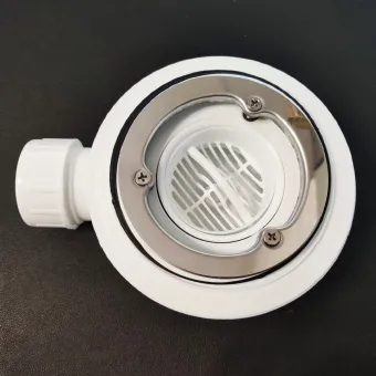 Bonde et siphon pour receveurs de douche avec trou d'évacuation Ø 60 mm, bouchon chromé Ø 83 mm. Parfaitement compatible avec nos receveurs de douche en céramique.