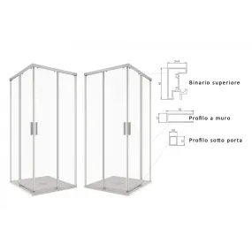 Cabine de douche coulissante avec double porte 6mm verre dépoli anticalcaire h195 cm . Idéal pour créer une cabine de douche coulissante à ouverture angulaire . La cabine de douche à deux portes coulissantes convient aux petites salles de bain. Le cristal est en satin lisse de 6 mm d'épaisseur . Serrure de porte hermétique . 16 roulements pour un coulissement rapide et sûr des portes.